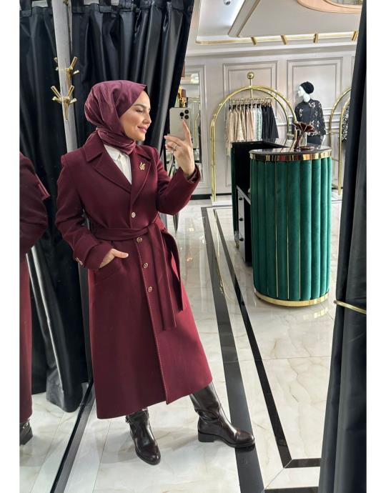DÜĞMELİ KAŞE KABAN Bordo