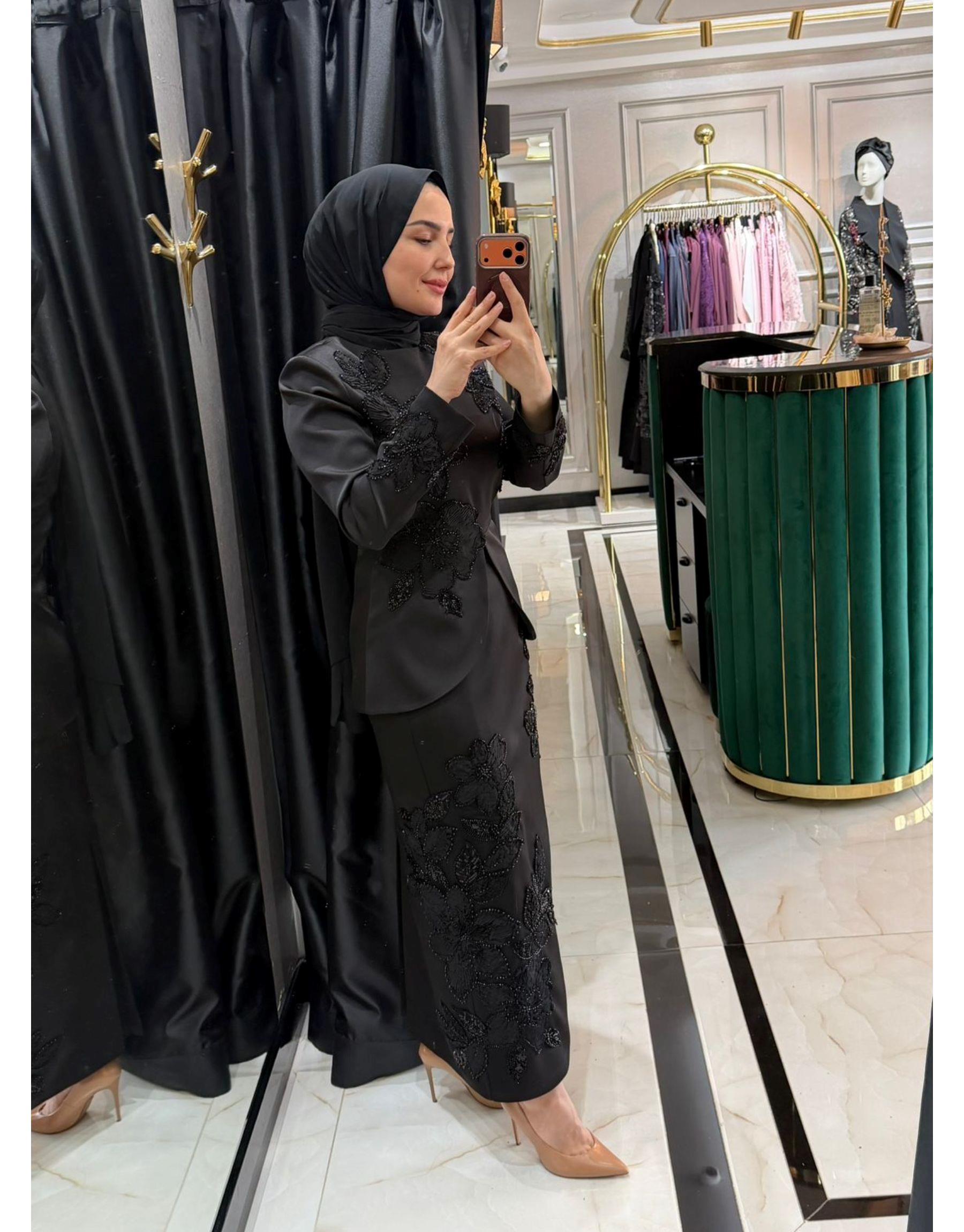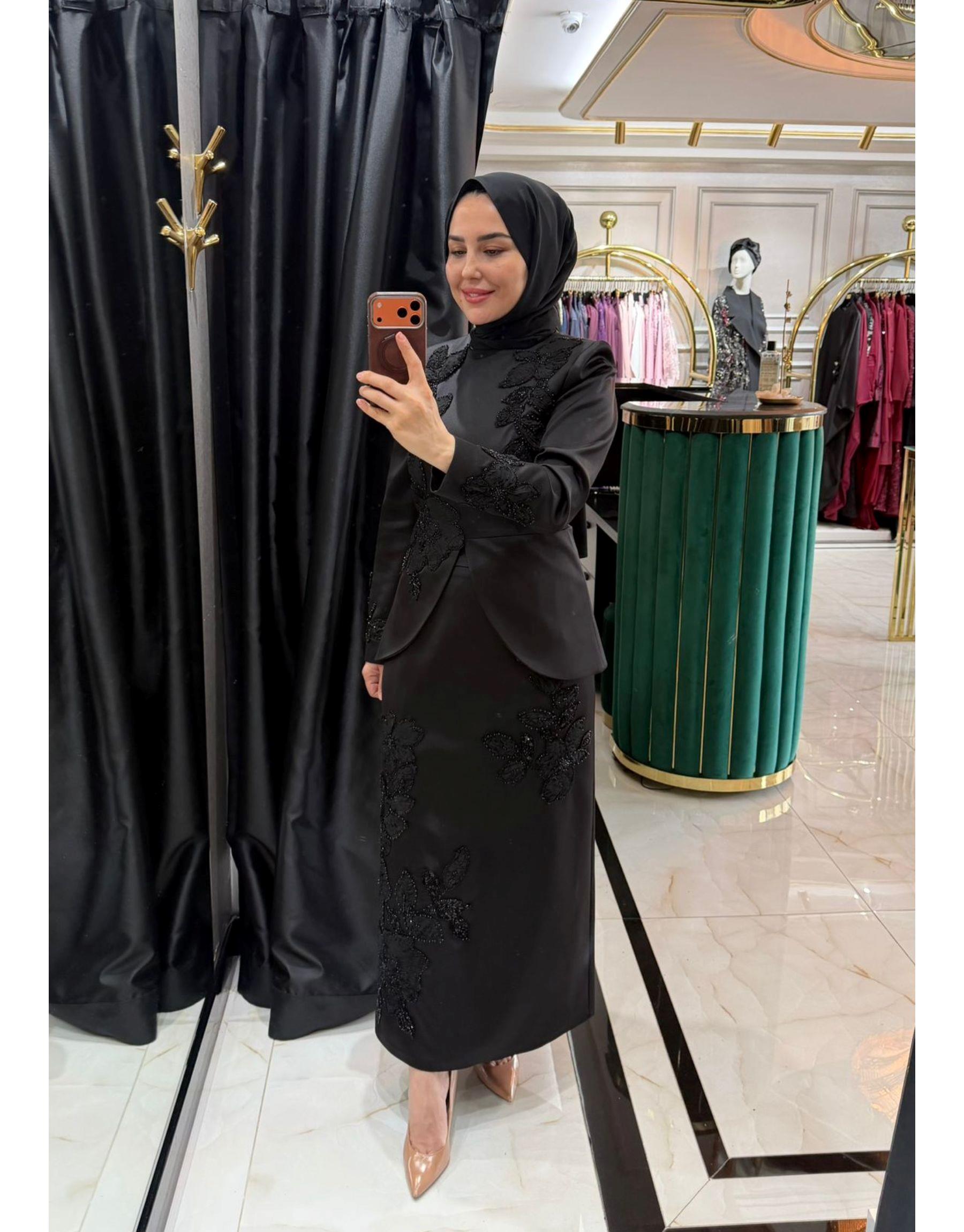 LEZ DANTEL ABAYA Siyah