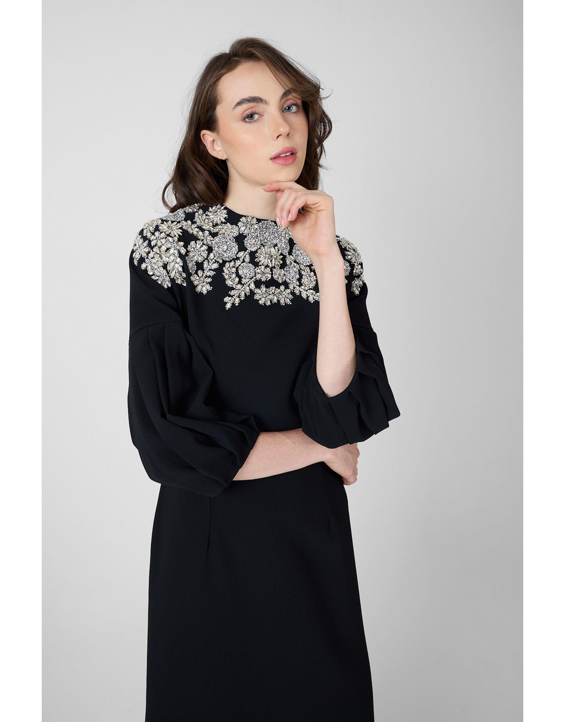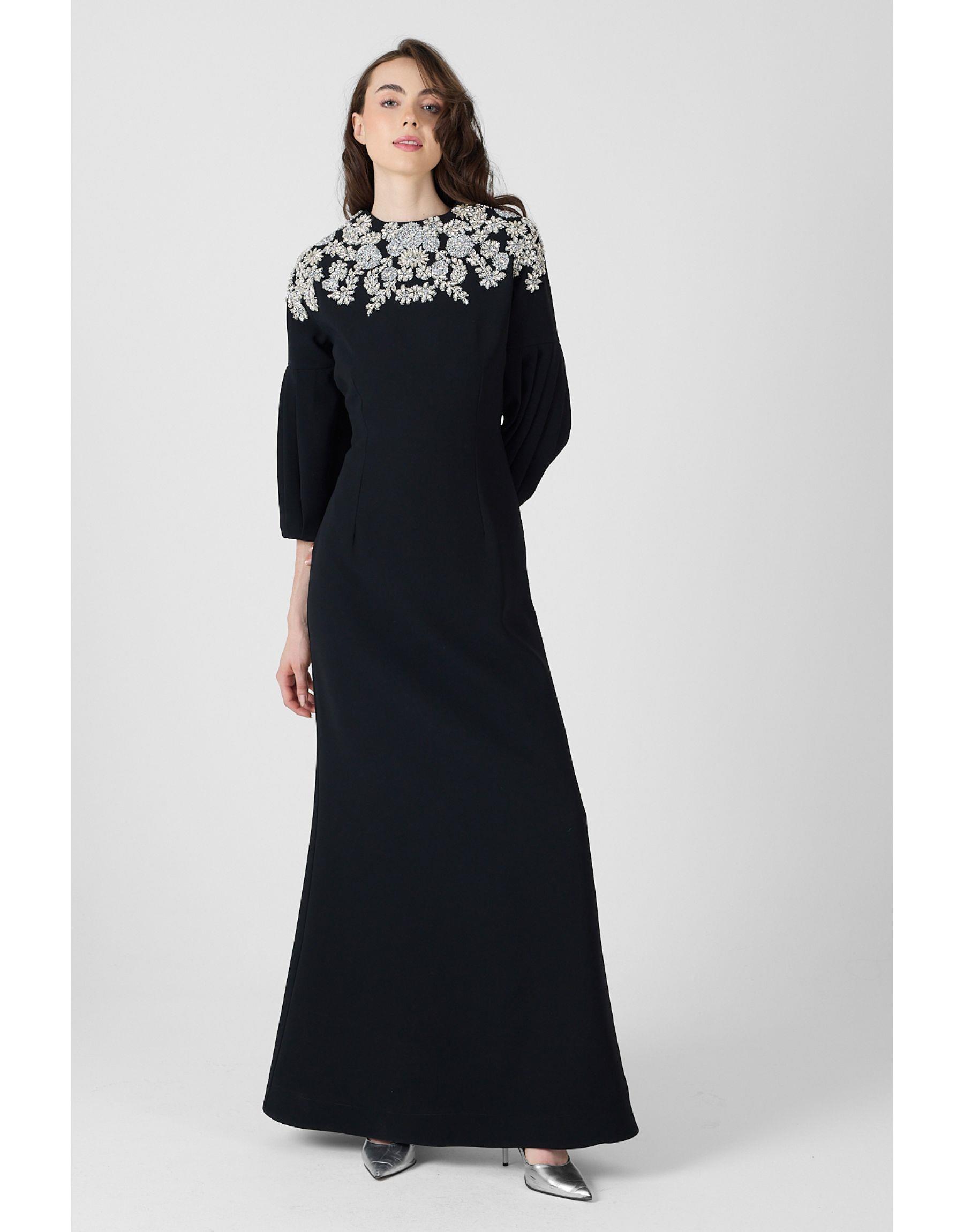 TAŞLI KREP ABİYE Siyah